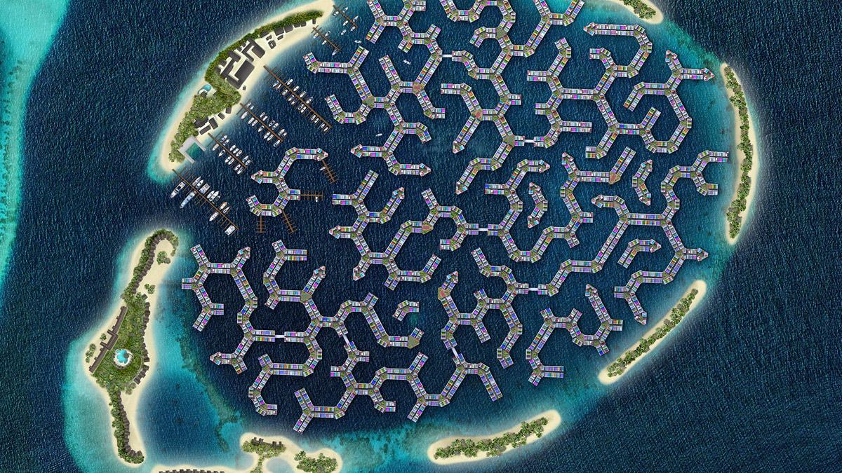 Staden består av 5 000 flytande enheter, inklusive bostäder restauranger, affärer och skolor och kan ta emot 20 000 invånare.